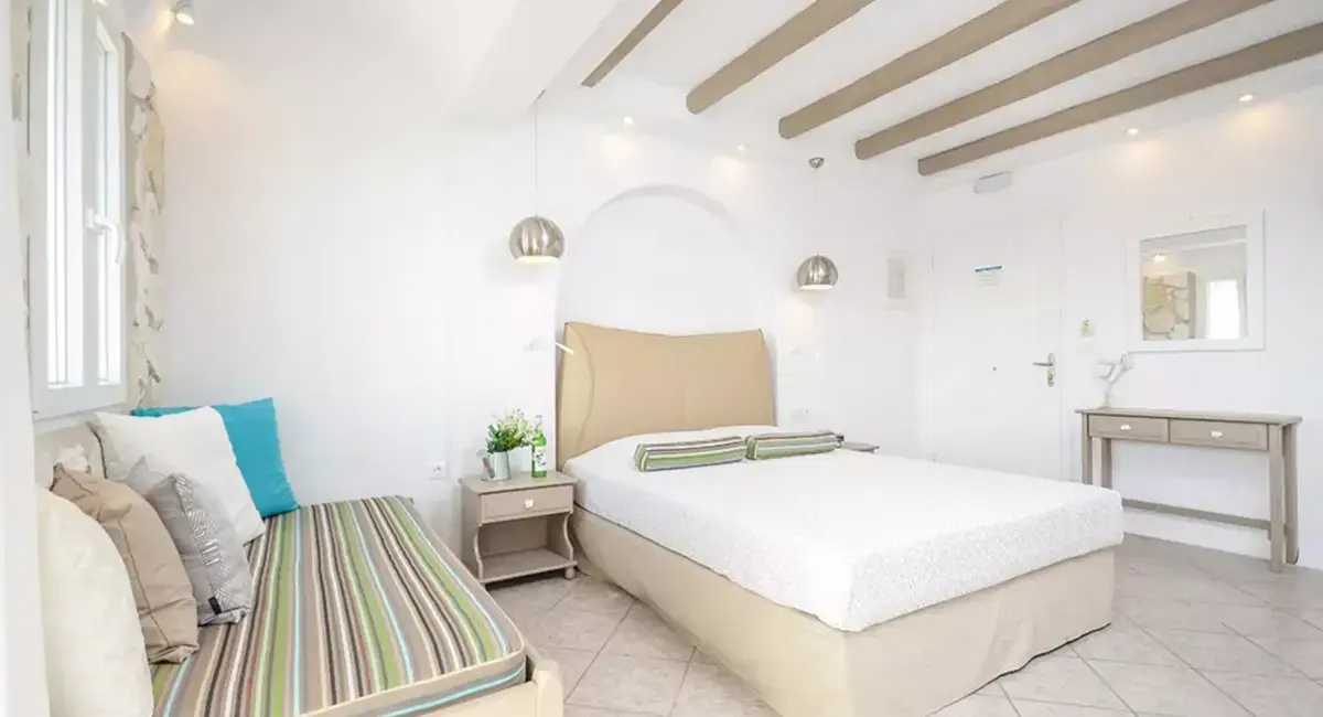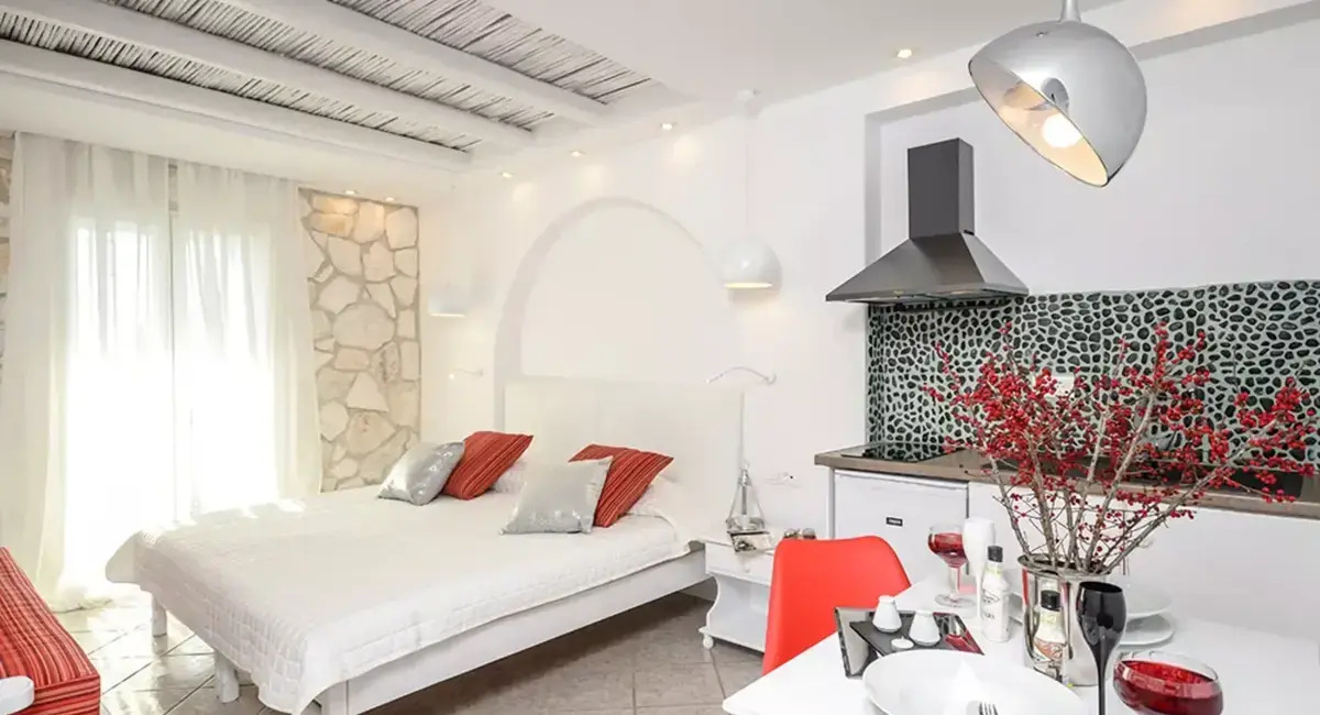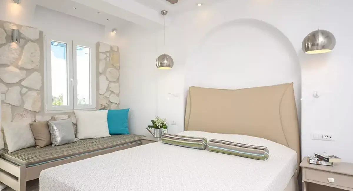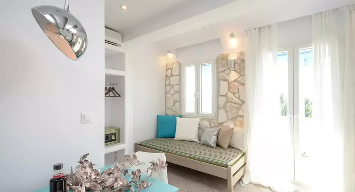 Naxos Evilion is een ideale keuze voor stellen en families, op loopafstand van het strand van Saint George (4 minuten) en dicht bij een bushalte. Het complex bestaat uit 9 luxe appartementen, gerenoveerd met behoud van traditionele architectuur voor een unieke en huiselijke sfeer. Heldere kleuren domineren de inrichting en laten het natuurlijke licht naar binnen stromen. De gastgevers zorgen voor een idyllische sfeer en een optimale vakantie-ervaring.