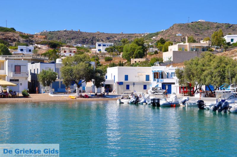 Het is de haven van het eiland en nog een ander mooi dorp in de Cycladen met witte huizen, smalle steegjes geplaveid met kasseien, kleine lodges om boten te beschutten en tuinen met bloembedden.