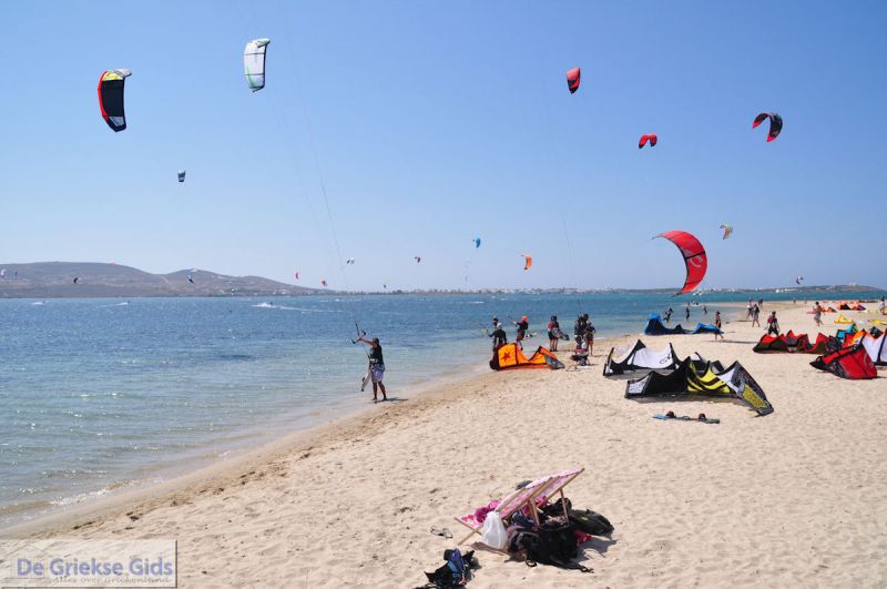 - Windsurfen in Santa Maria, Molos, New Golden Beach (Tserdakia), Golden Beach en in de omgeving van Pounta (in Antiparos).